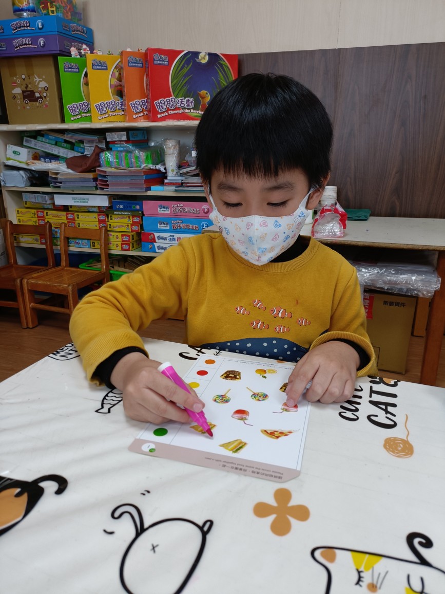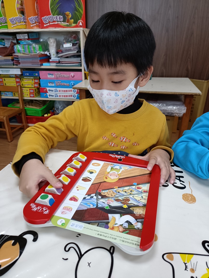 本週進度:中班~1.熟悉魔輪板與操作卡的操作方式2.仔細觀察並能找出相同物品。