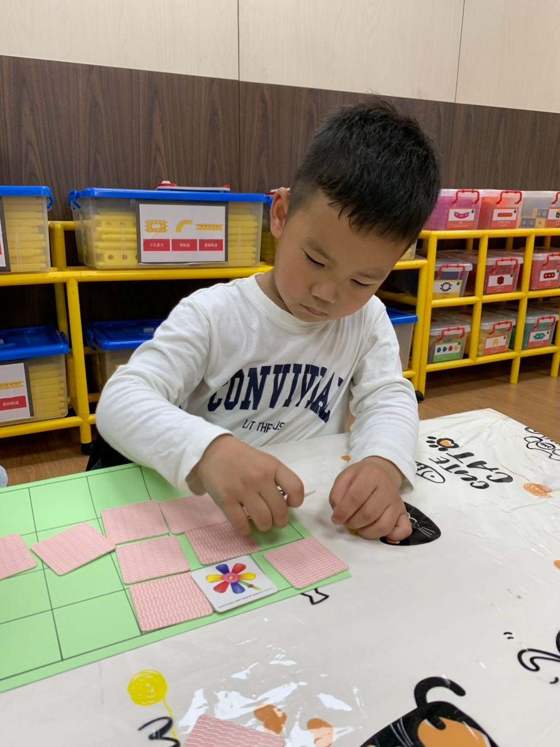 本週進度:1.觀察食物分類擺放的方式並找出放錯的物品。2.辨識物品的屬性並能找出不同屬性的物品。